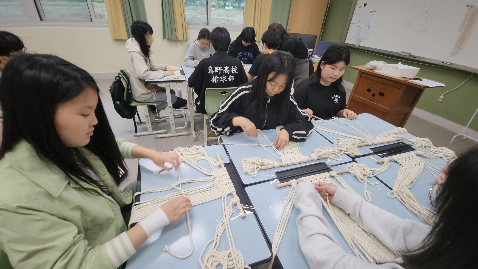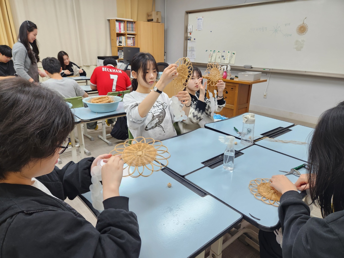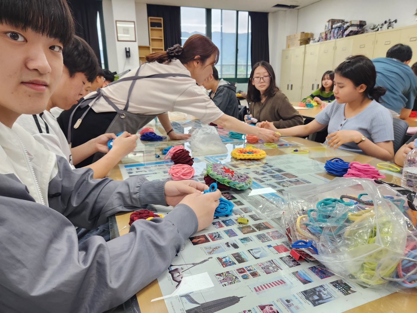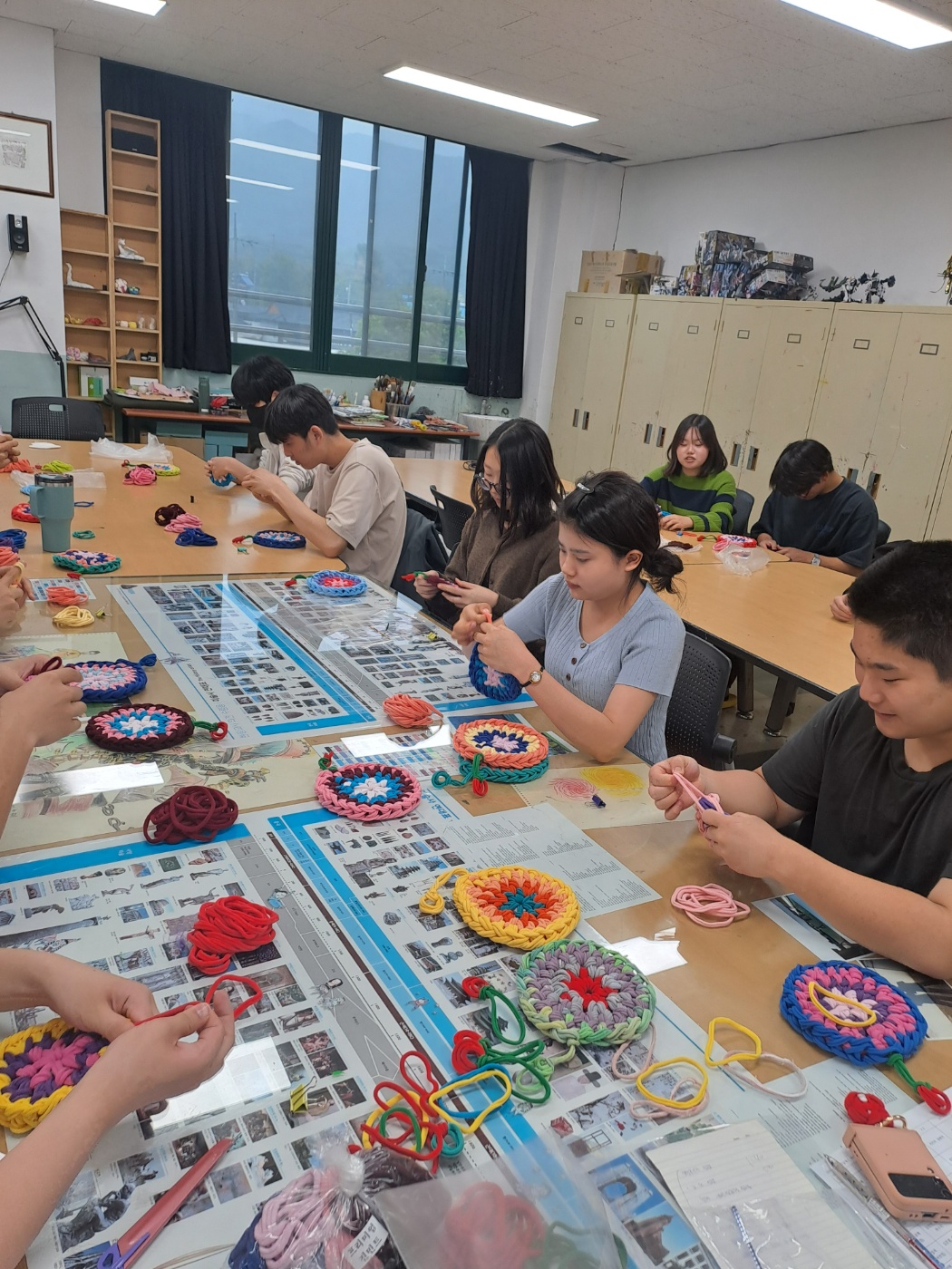 학생들의 선택을 통해 5개영역 라탄공예(자개풍경), 마크라메(틸란드시아행잉), 가죽공예(도장지갑), 레진공예(컵받침), 양말목 공예(냄비받침) 제작활동을 체험하였습니다.