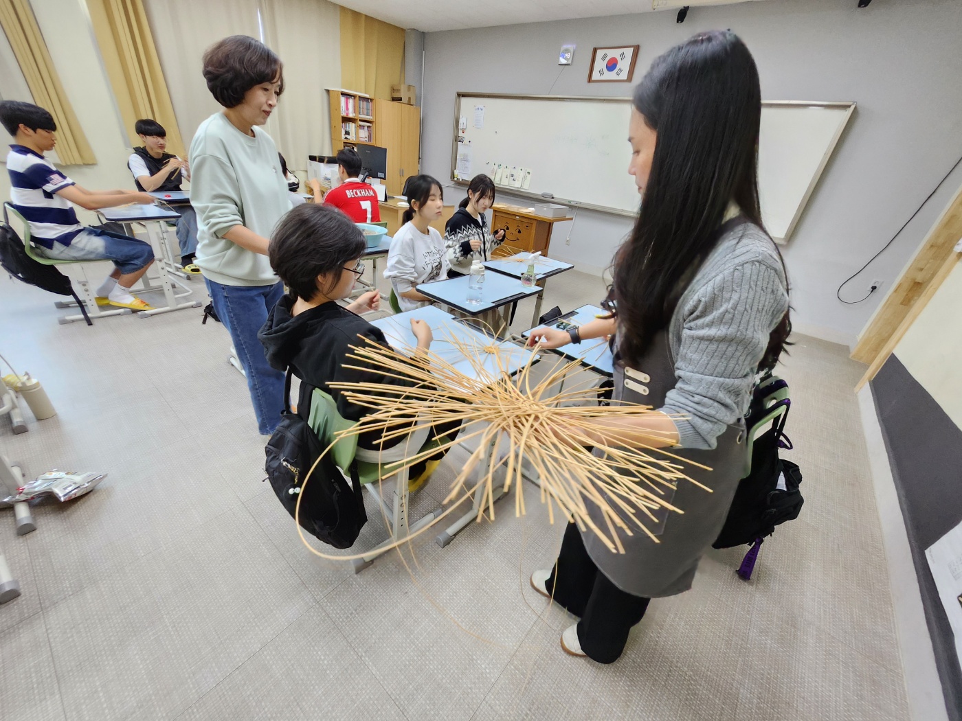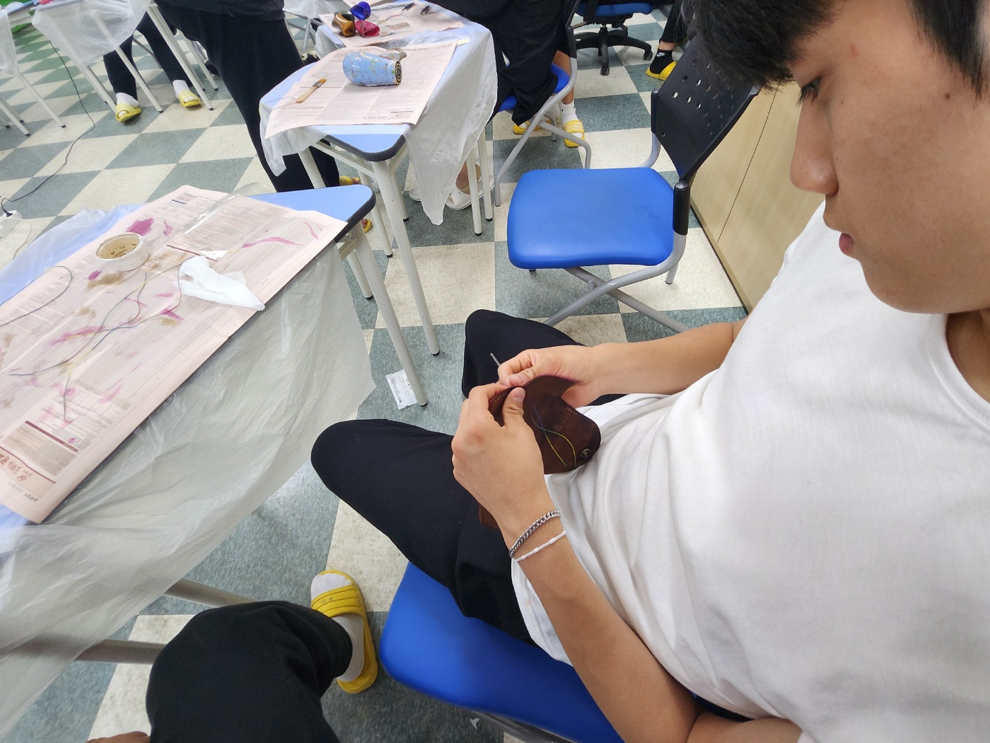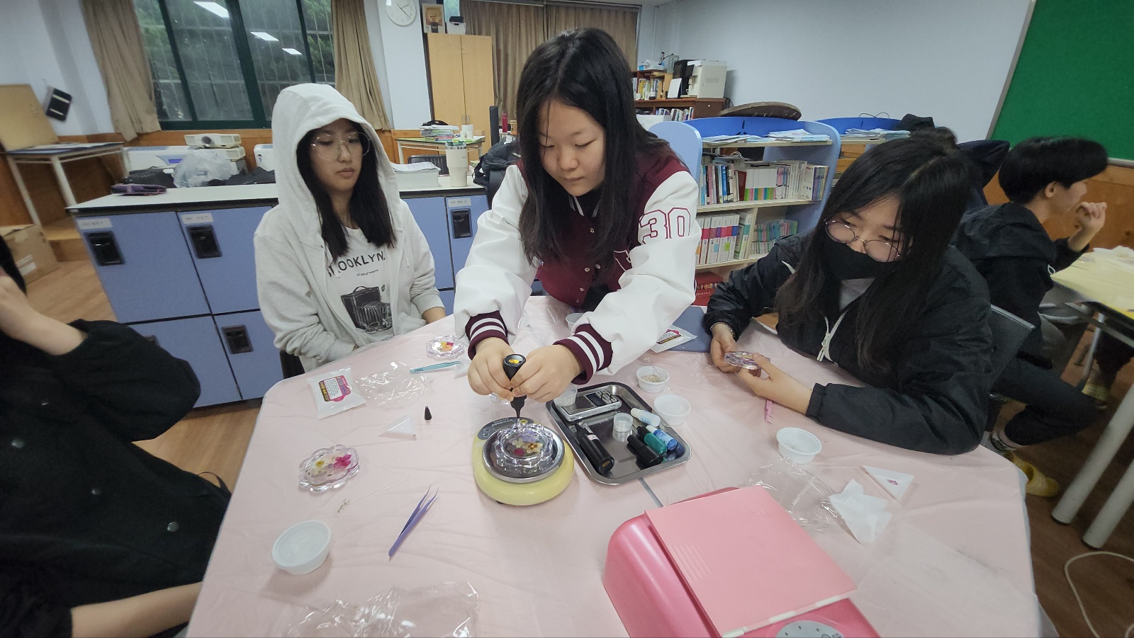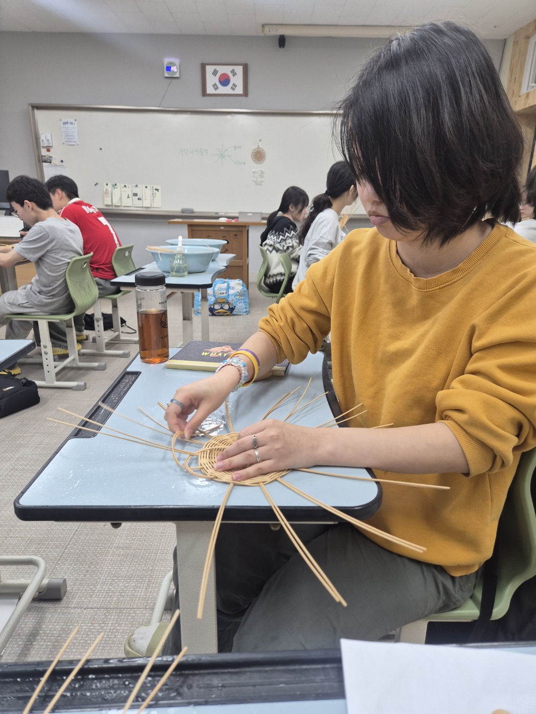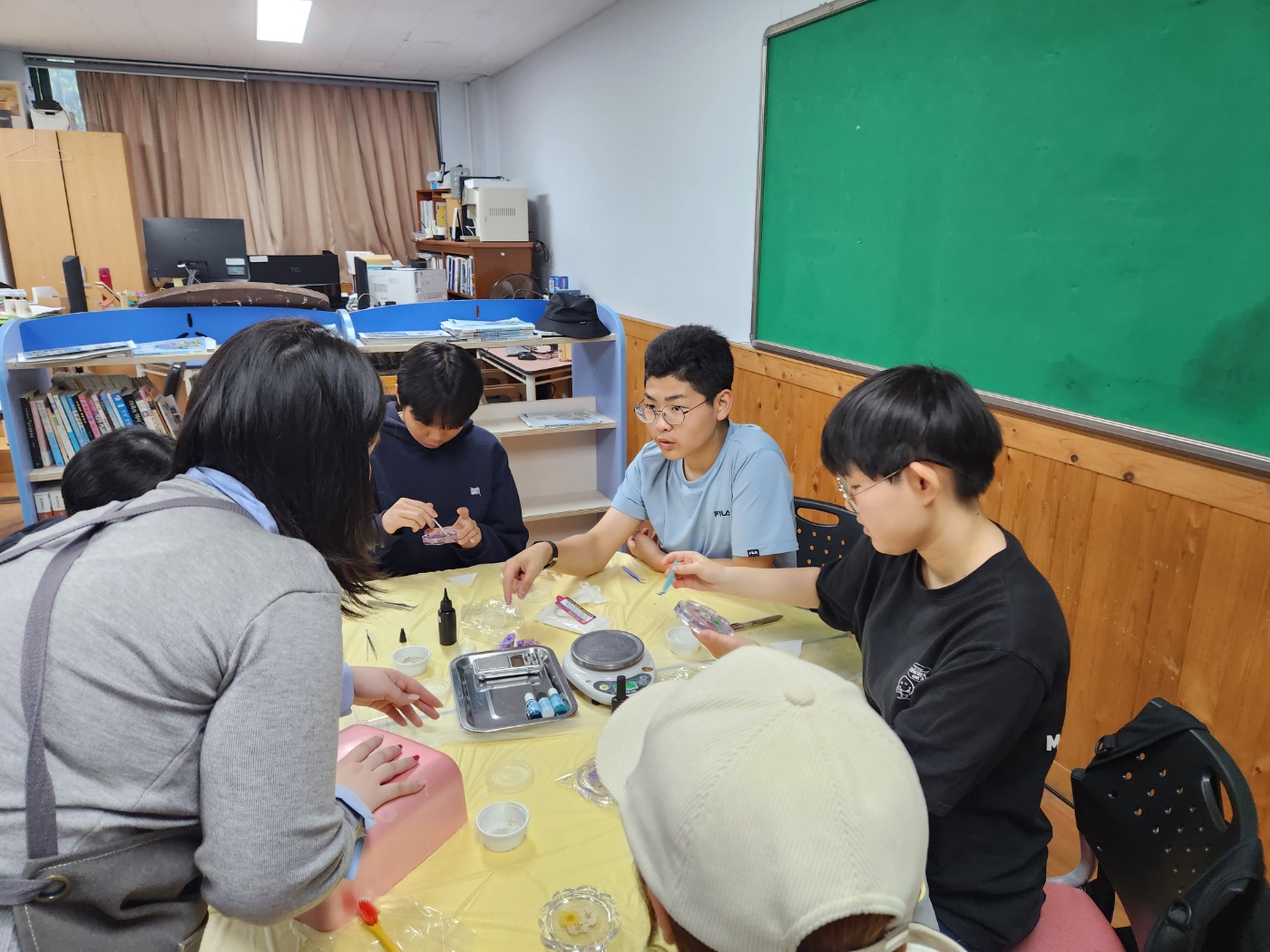 학생들의 선택을 통해 5개영역 라탄공예(자개풍경), 마크라메(틸란드시아행잉), 가죽공예(도장지갑), 레진공예(컵받침), 양말목 공예(냄비받침) 제작활동을 체험하였습니다.
